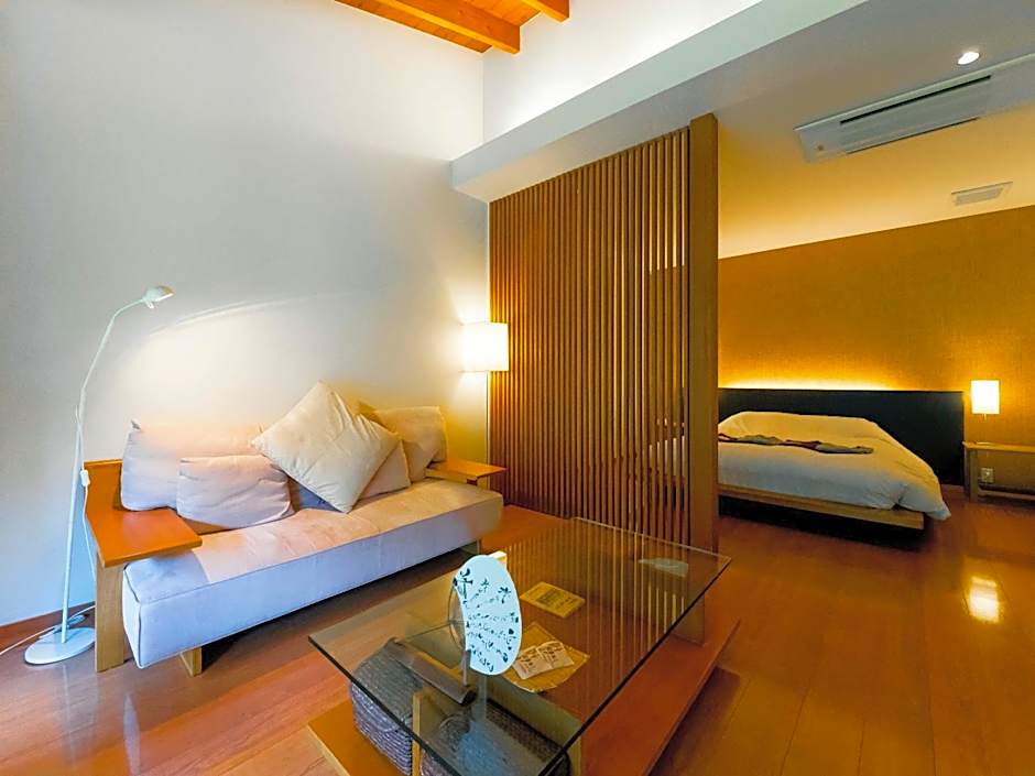 This chic maisonette comes with a private hot spring bath and a loft sleeping area. Featuring a peaceful ambiance and décor inspired by Japanese sensibility, it comes with a living room with a sofa and comfortable Simmons beds. Free Wi-Fi is available. A flat-screen TV with a DVD player and a Bose sounding system is provided, and yukata robes and free tea bags are also included.